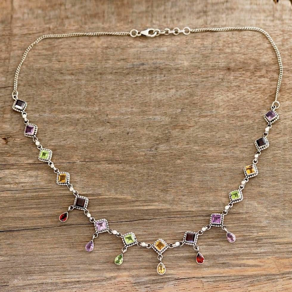 Multi-Gemstone Link Necklace Crafted in India 'Shimmering Light' Item ID: 2671620126