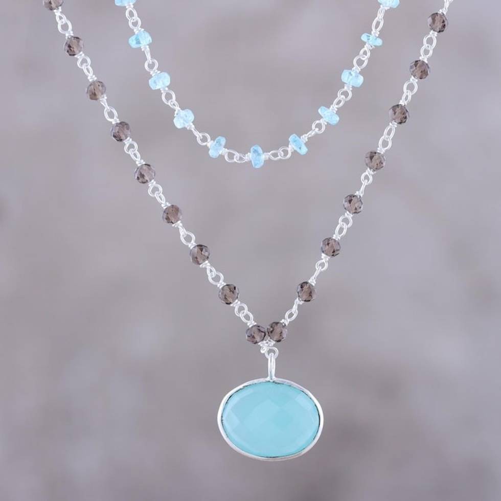 Multi-Gemstone Link Pendant Necklace from India 'Sparkling Tricolor' Item ID: 2671792193
