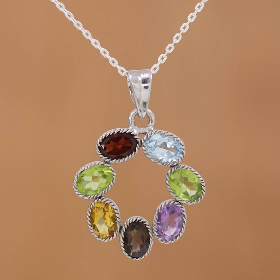 Multi-Gemstone Pendant Necklace on Cable Chain 'Joyful Colors' Item ID: 2671790221
