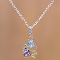 Multi Gemstone Pendant Necklace with Rhodium Plating 'Glowing Trio' Item ID: 2671619407