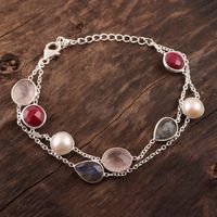Multi-Gemstone Station Strand Bracelet from India 'Glamorous Glisten' Item ID: 2671618632