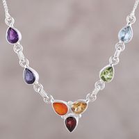 Multi-Gemstone Sterling Silver Chakra Necklace from India 'Shimmering Harmony' Item ID: 2671792421