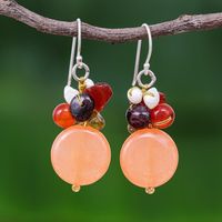 Multi-gemstone Sterling Silver Dangle Earrings 'Orange Love' Item ID: 2669930205