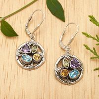 Multi-gemstone Sterling Silver Dangle Earrings from Bali 'Splendid Bamboo' Item ID: 2671701464