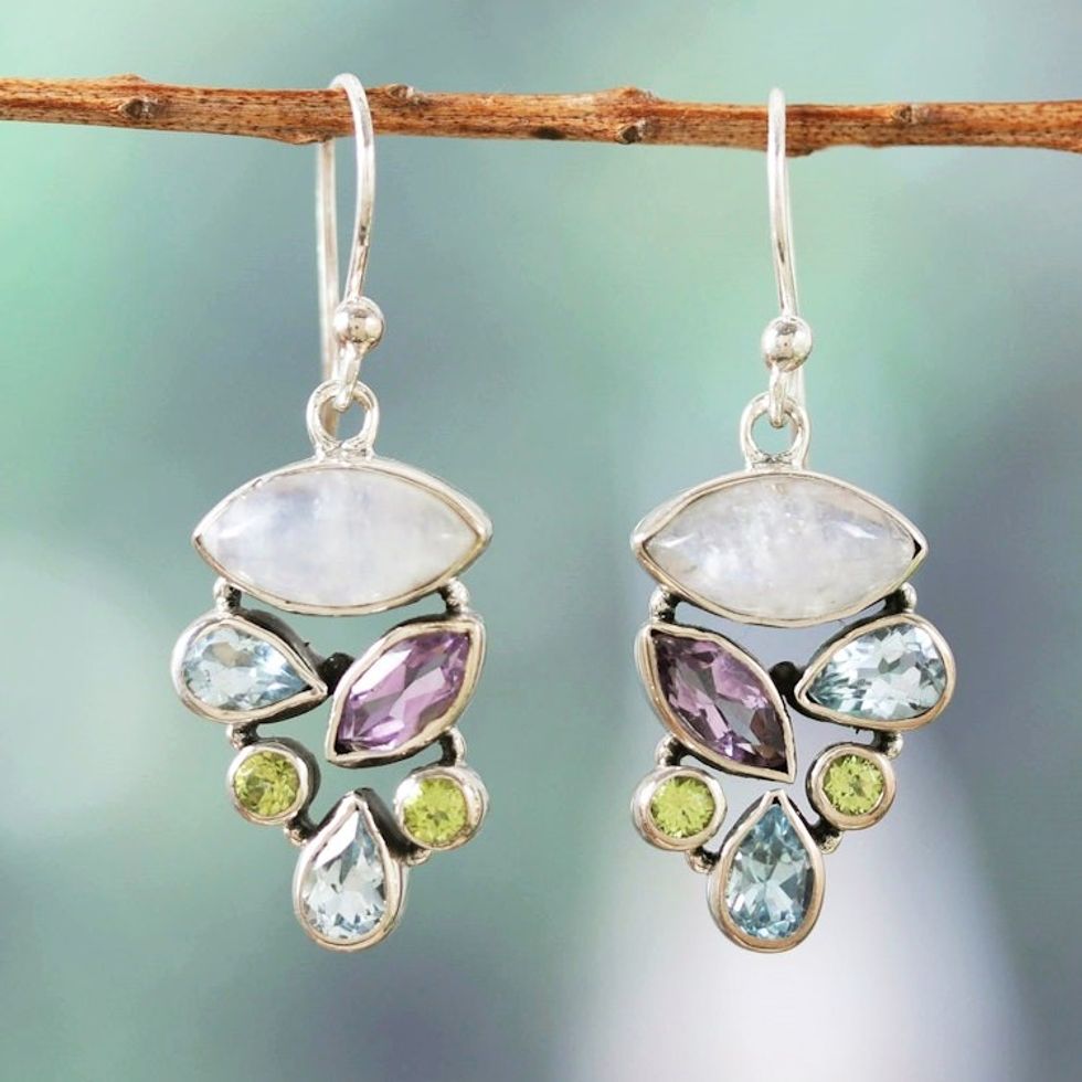 Multi-Gemstone Sterling Silver Dangle Earrings from India 'Stylish Glam' Item ID: 2671786847