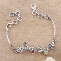 Multi-Gemstone Sterling Silver Pendant Bracelet from India 'Precious Berries' Item ID: 2671786630