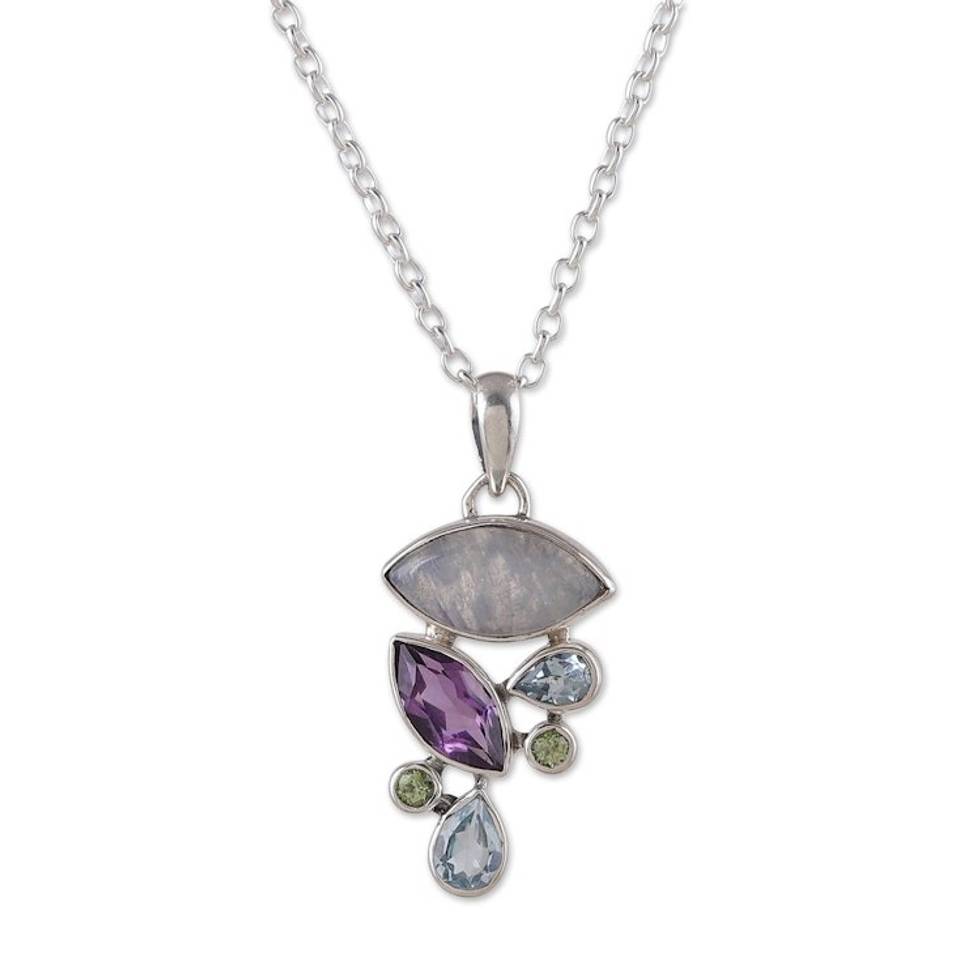 Multi-Gemstone Sterling Silver Pendant Necklace from India 'Stylish Glam' Item ID: 2671786596