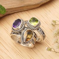 Multi-Gemstone Sterling Silver Stacking Rings Set of 3 'Perfect Prism' Item ID: 2671667388