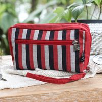 Multi-Pocket Striped Wristlet Bag Handwoven from Cotton 'Versatile Crimson' Item ID: 2671763157