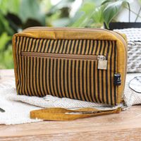Multi-Pocket Striped Yellow Wristlet Bag Crafted from Cotton 'Versatile Yellow' Item ID: 2671762918