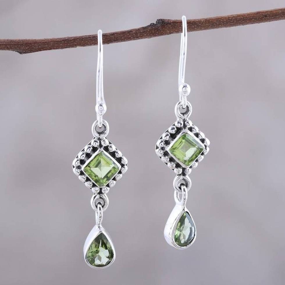Multi-Shape Peridot and Sterling Silver Dangle Earrings 'Shimmering Light' Item ID: 2676664146