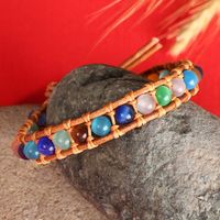 Multicolor Agate Beaded Bracelet with Brown Leather Accents 'Summery Colors' Item ID: 2669935506