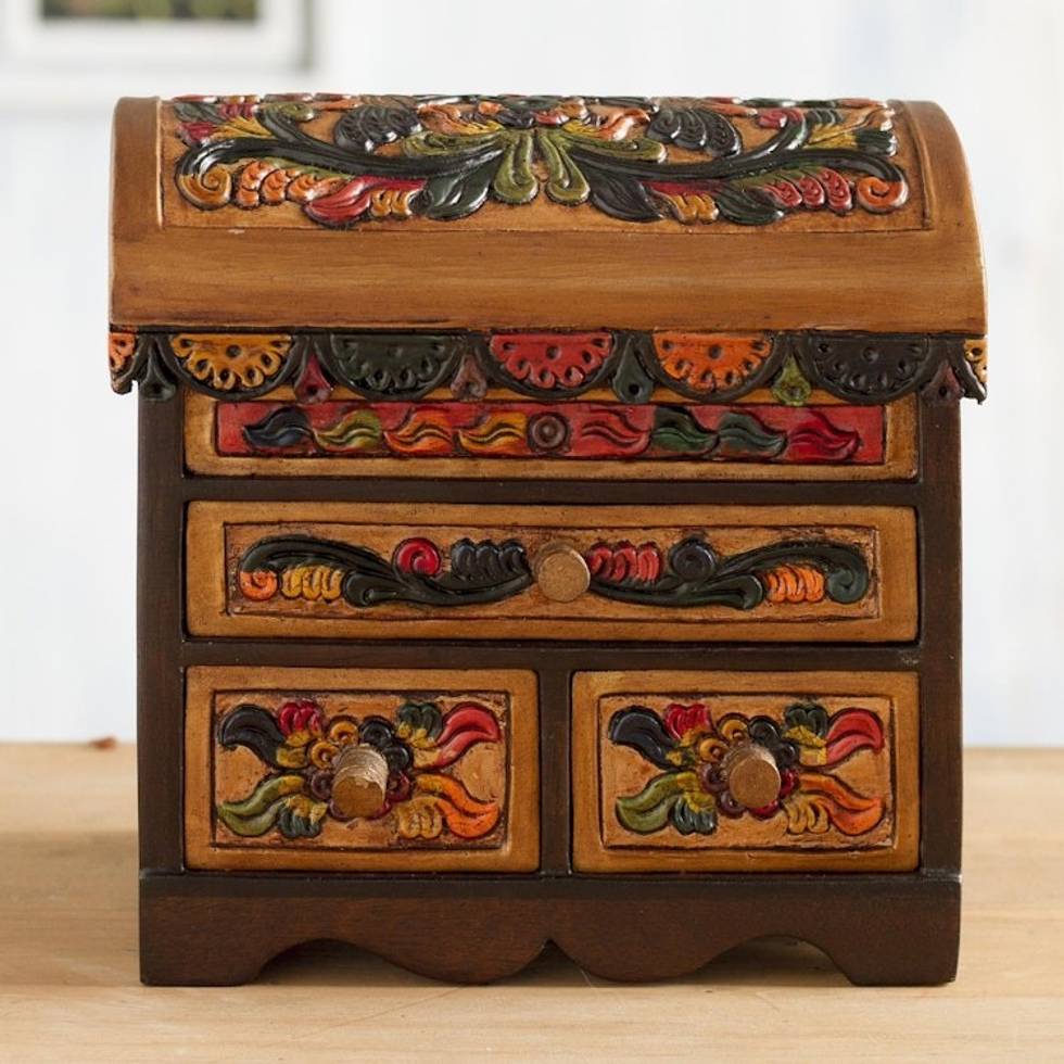 This little jewelry box is visually stunning and beautifully made. I use it as a backdrop for necklaces I sell on-line and its warm color and detailed carvings provide a beautiful contrast to my sparkling jewelry. It is a perfect size for a gift to a teen girl to store her treasures.