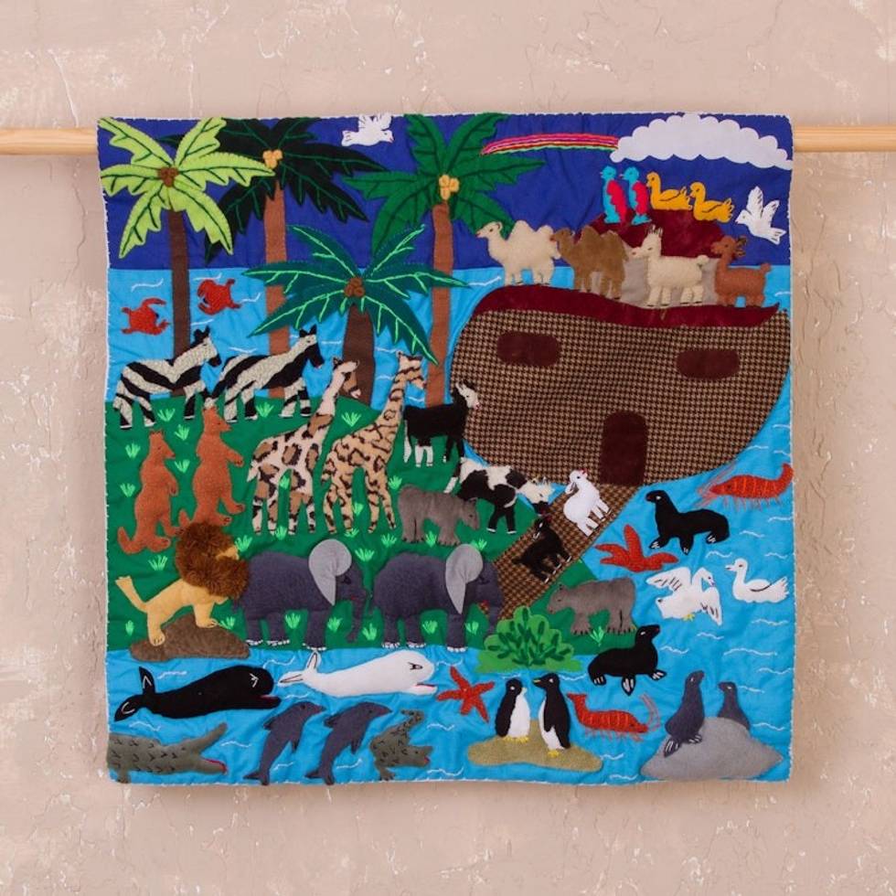 Multicolor Cotton Blend Noah's Ark Applique Wall Hanging 'After the Rainbow' Item ID: 2669908169