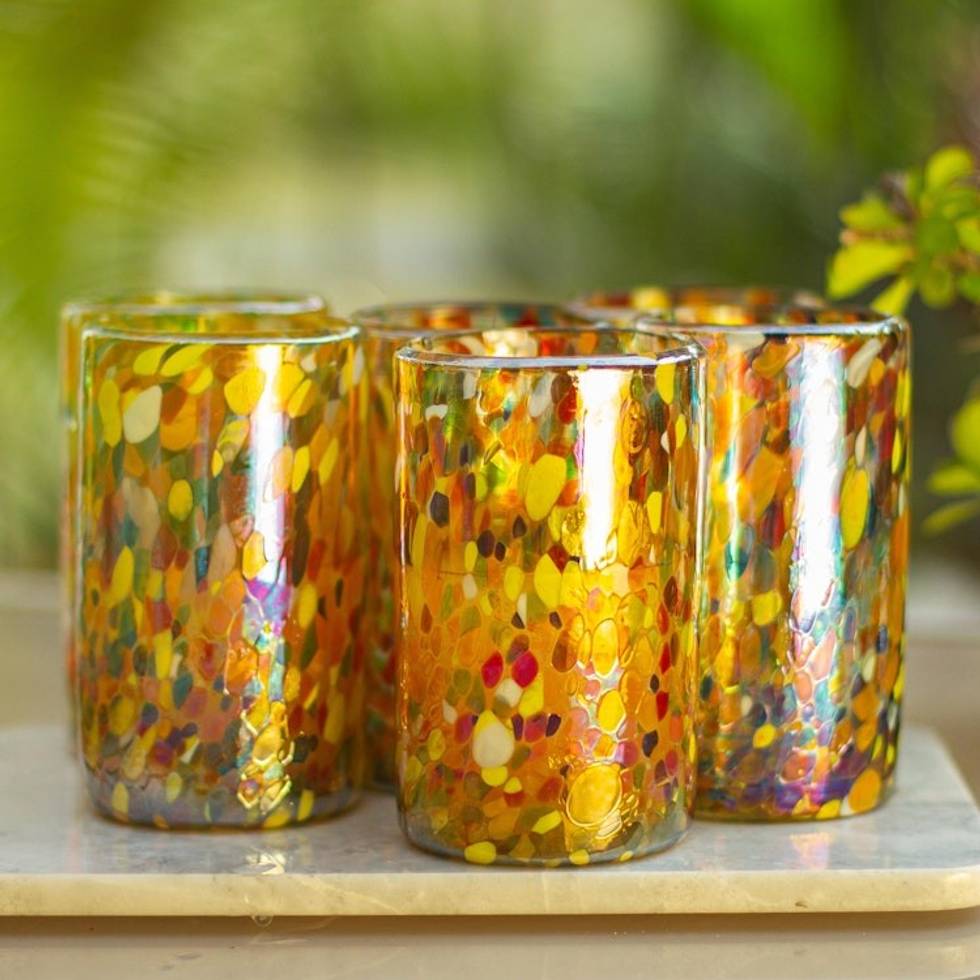 Multicolor Hand Blown Glasses Tumblers Set of 6 Mexico 'Carnival' Item ID: 2669897986