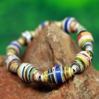 Multicolor Handmade Bracelet with Recycled Paper Beads 'Storyteller' Item ID: 2671806859
