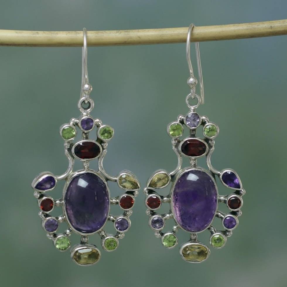 Multicolor Multigem Earrings in Sterling Silver 'Purple Peacock' Item ID: 2669943902