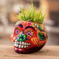 Multicolor Skull-Like Ceramic Mini Flower Pot from Guatemala 'Herbaceous Cranium' Item ID: 2669923564