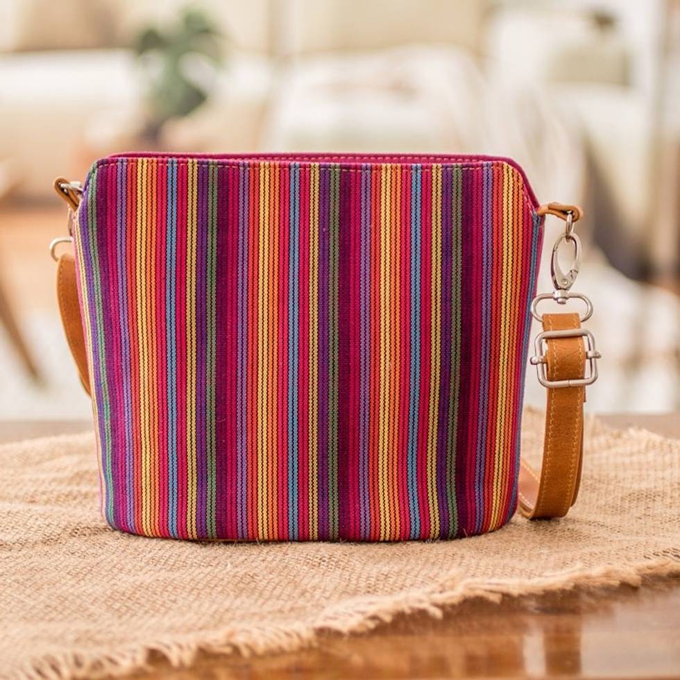 Multicolor Striped Cotton Sling Bag with a Leather Strap 'Harmonious Shadows' Item ID: 2671770680