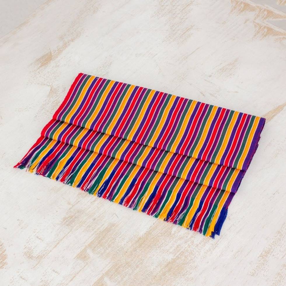 Multicolor Striped Cotton Table Runner from Guatemala 'Path of Happiness' Item ID: 2671780071