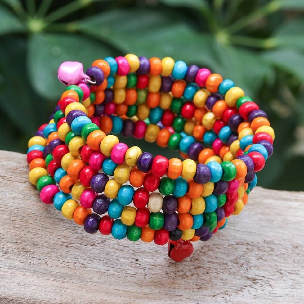 Multicolor Wood Beaded Wrap Bracelet with Bells 1.5 In 'Bubblegum Spin' Item ID: 2671798105