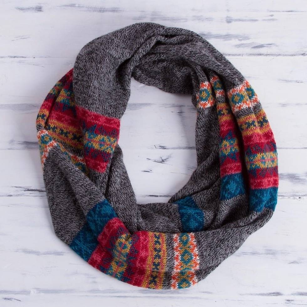 Multicolored 100 Alpaca Neck Warmer from Peru 'Multicolored Inca' Item ID: 2671820370