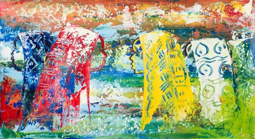Multicolored Abstract Painting from Ghana 'Strong Women' Item ID: 2669889698