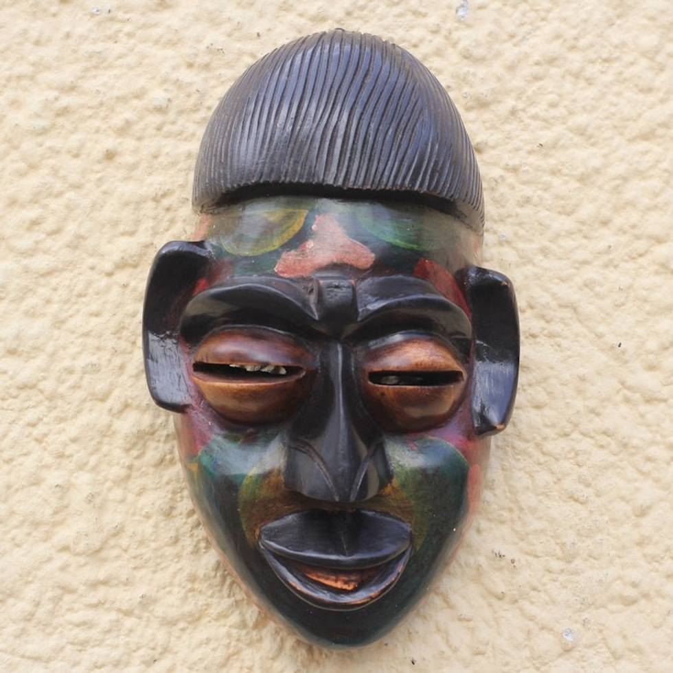 Multicolored African Wood Mask Crafted in Ghana 'Colorful Ewe' Item ID: 2671806332