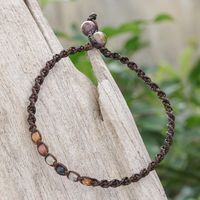 Multicolored Agate Beaded Macrame Anklet from Thailand 'Thai Beach Chic' Item ID: 2671641245