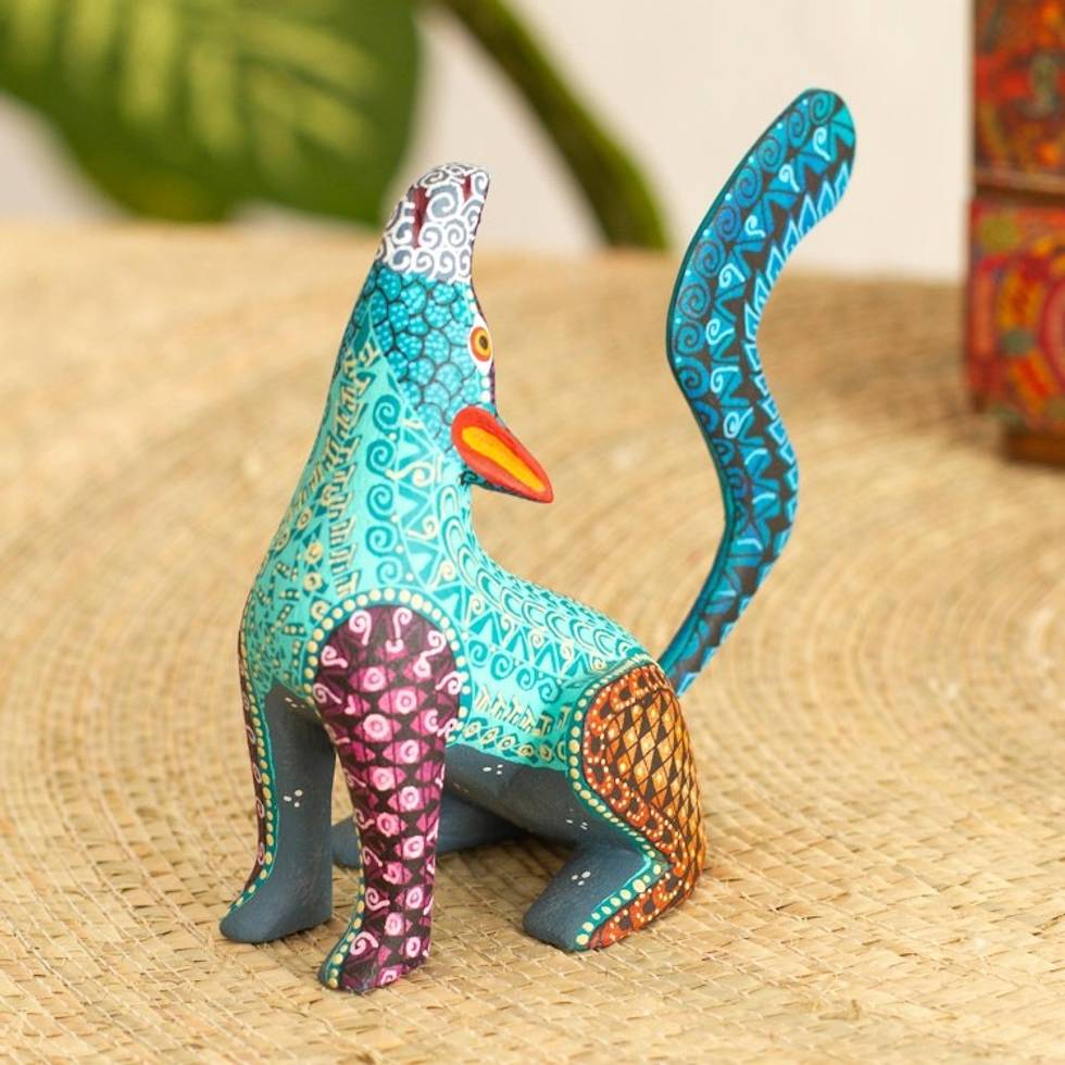 Multicolored Alebrije Coyote Figurine with Geometric Motifs 'Howling Coyote' Item ID: 2669897994