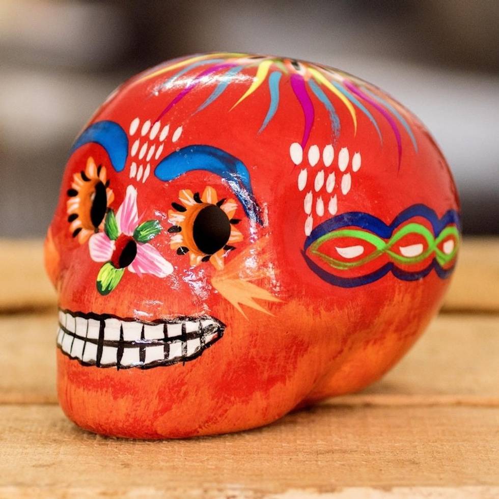 Multicolored Ceramic Figurine 'Flowery Skull in Red' Item ID: 2671772054