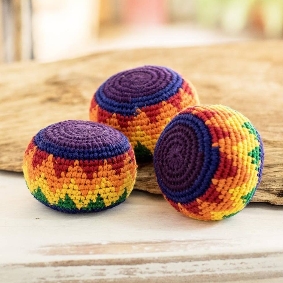 Multicolored Cotton Hacky Sacks Set of 3 'Maya Colors' Item ID: 2669933630
