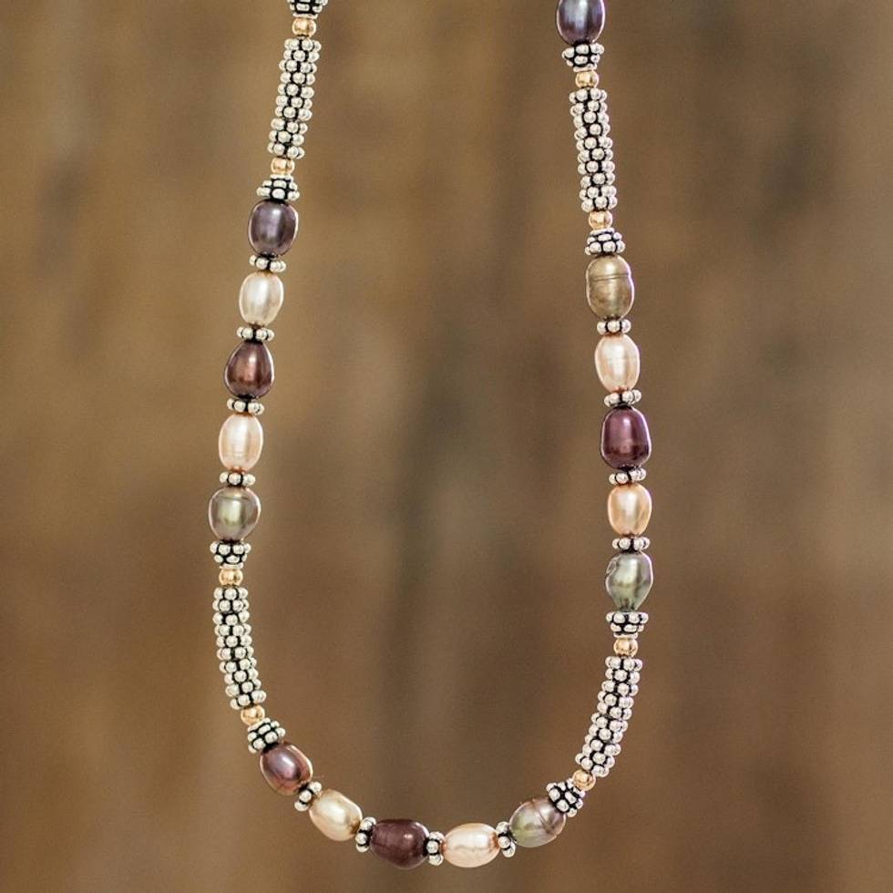 Multicolored Cultured Pearl Beaded Necklace 'Resplendent Colors' Item ID: 2669923693