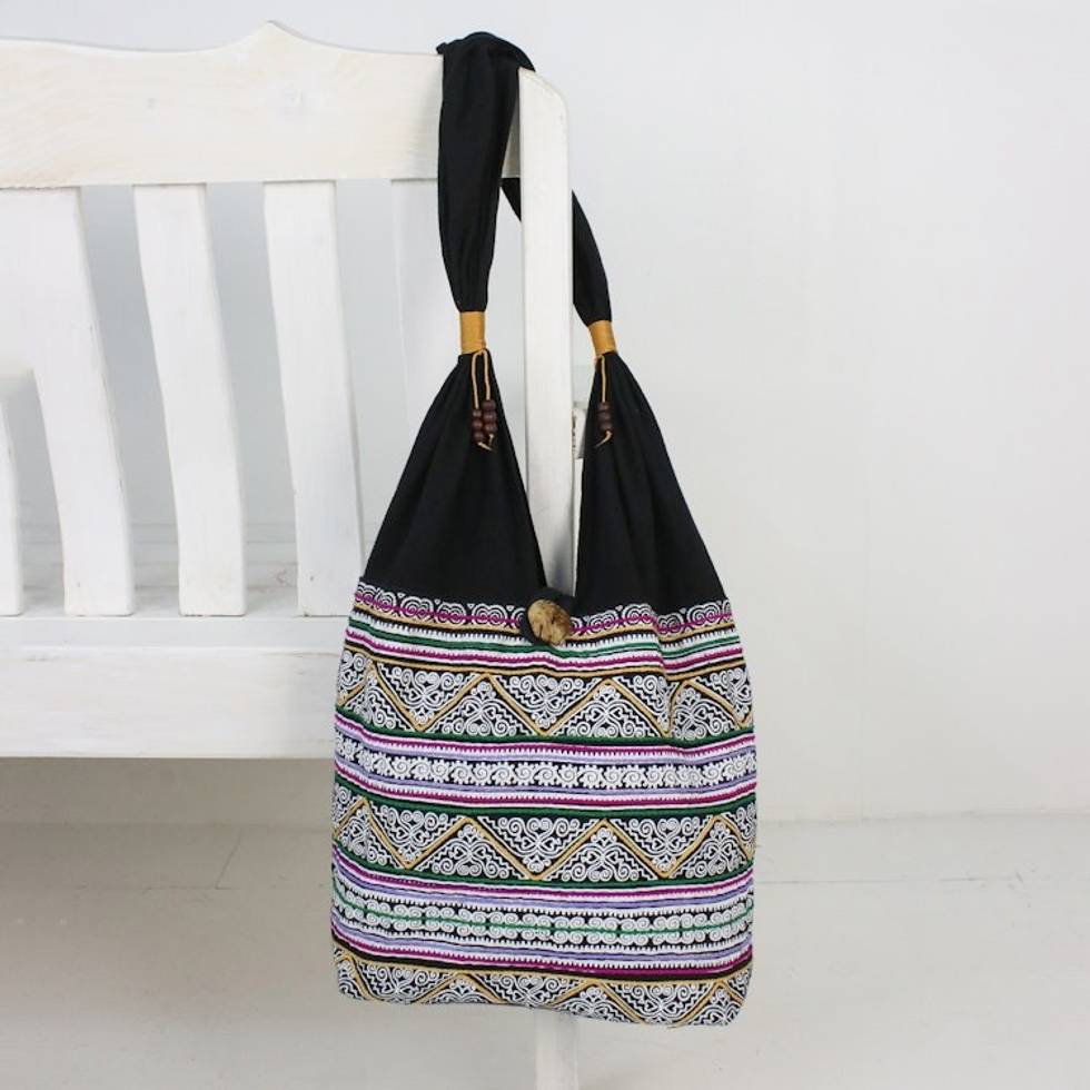 Multicolored Embroidered Cotton Shoulder Bag from Thailand 'Thai Spirals' Item ID: 2669926601