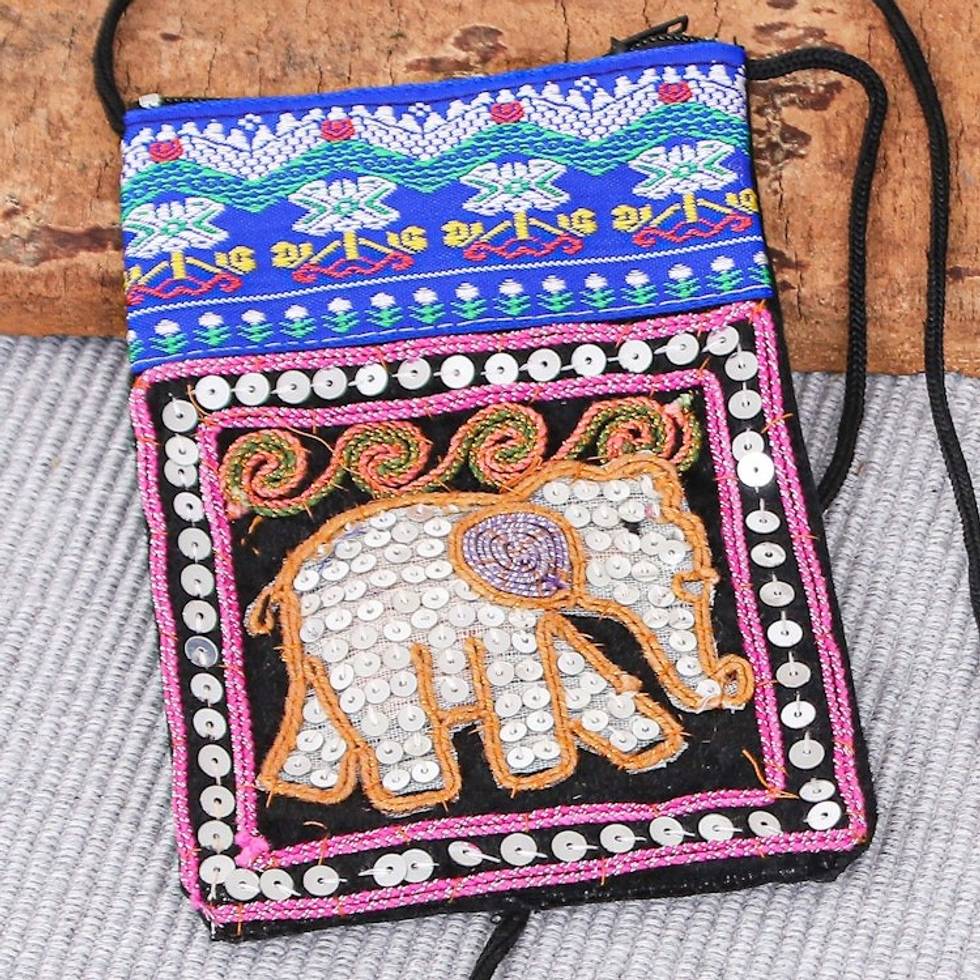 Multicolored Fabric Sling Bag 'Elephant Glitz' Item ID: 2669894189