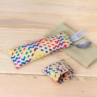 Multicolored Hand-Woven Palm Fiber Utensil Holder with Lid 'Color Burst' Item ID: 2671639534