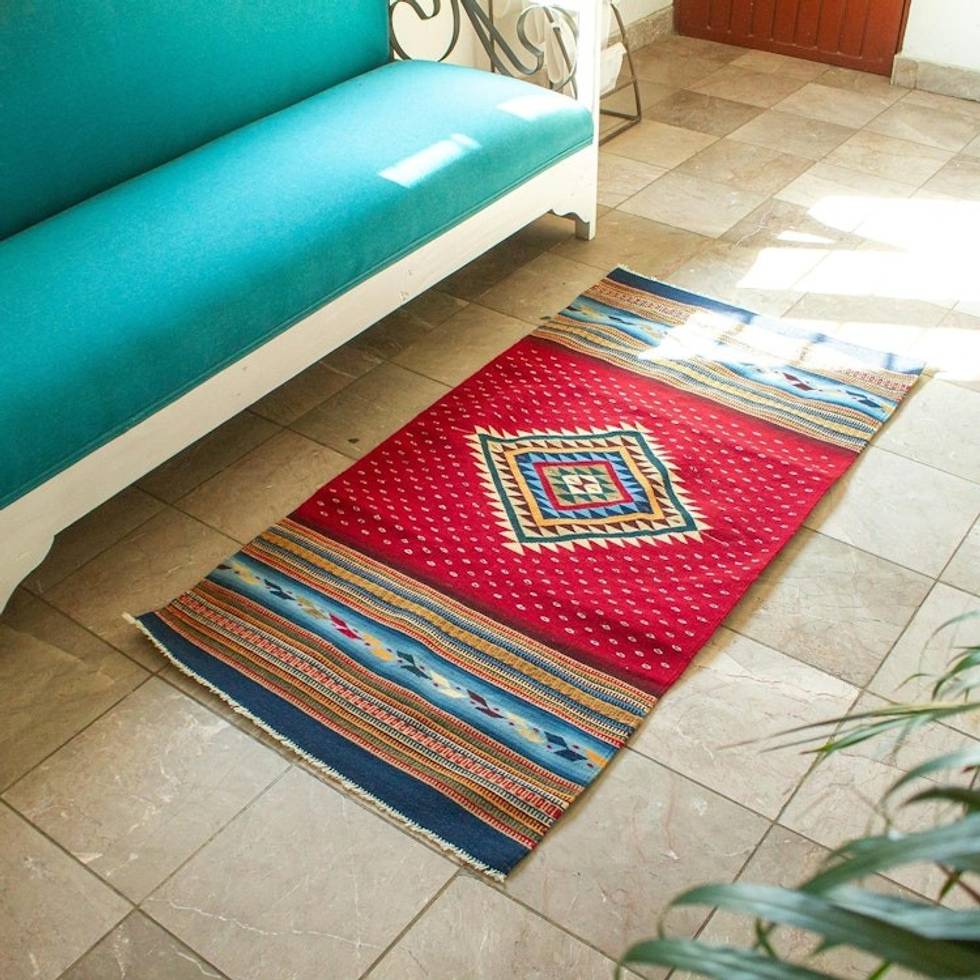 Multicolored Handwoven Geometric 2.5 x 5 Zapotec Area Rug 'Oaxaca Diamond' Item ID: 2671808224