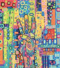 Multicolored Modern Stretched Sublimation Print of A Hand 'Hand' Item ID: 2671769528