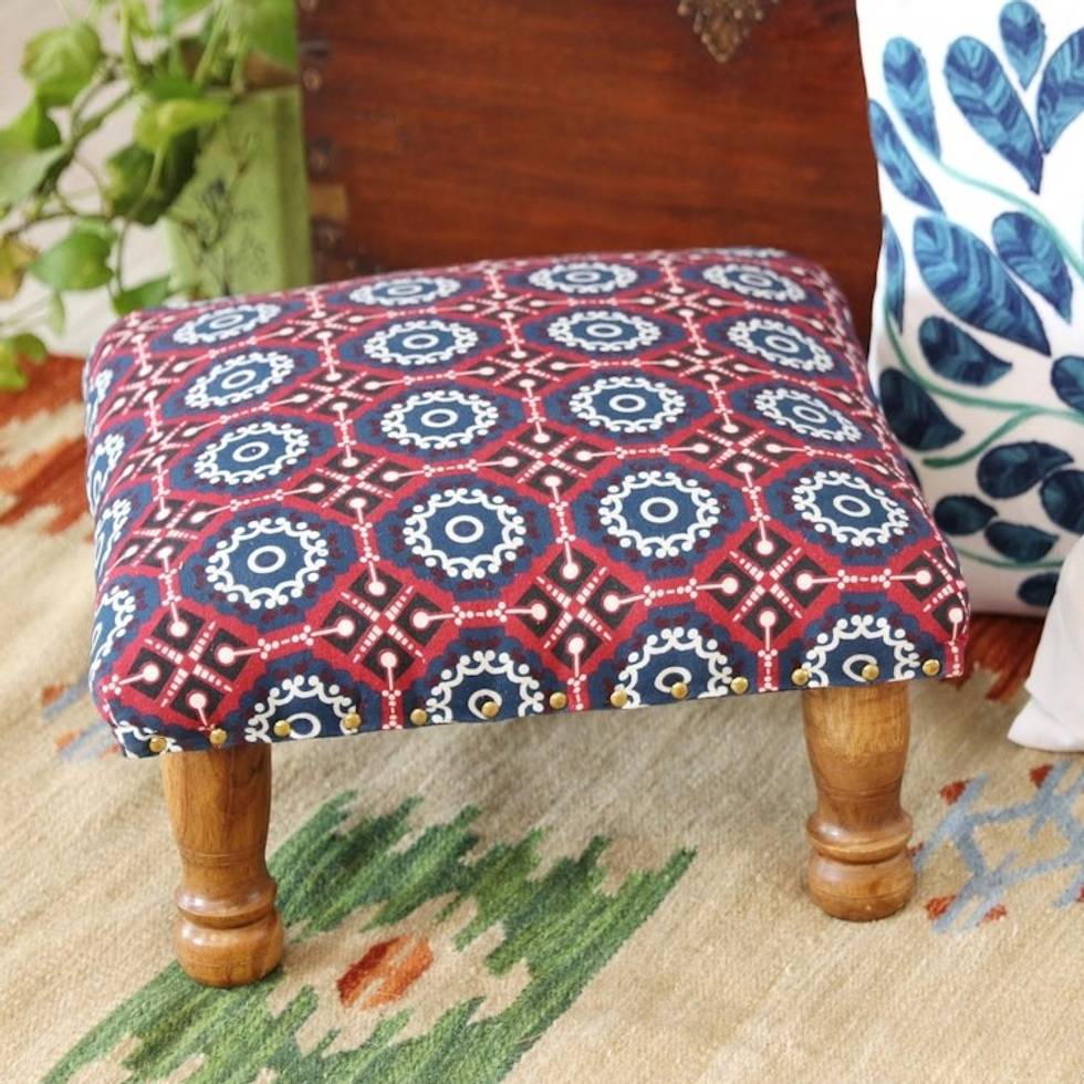 This beautiful footstool has meticulously appointed stitching and beautifully carved legs. The mandala is exotically enchanting. It's also comfortably familiar, reminding me of my aunt's footstool from childhood. A small furnishing that brings me so much joy, it's hard to explain. Thank you to the skilled women who brought Ganpat's lovely vision to life.