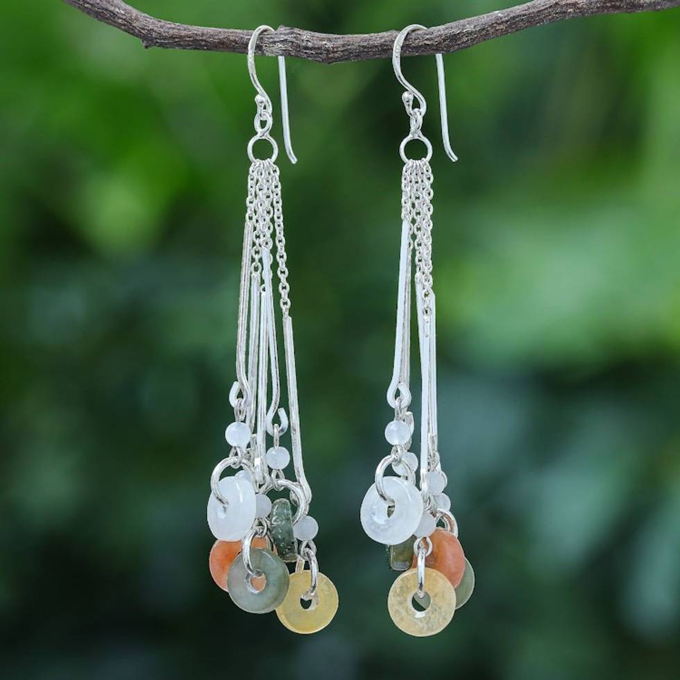 Multicolored Quartz and Jade Waterfall Earrings 'Earthy Blend' Item ID: 2669925719