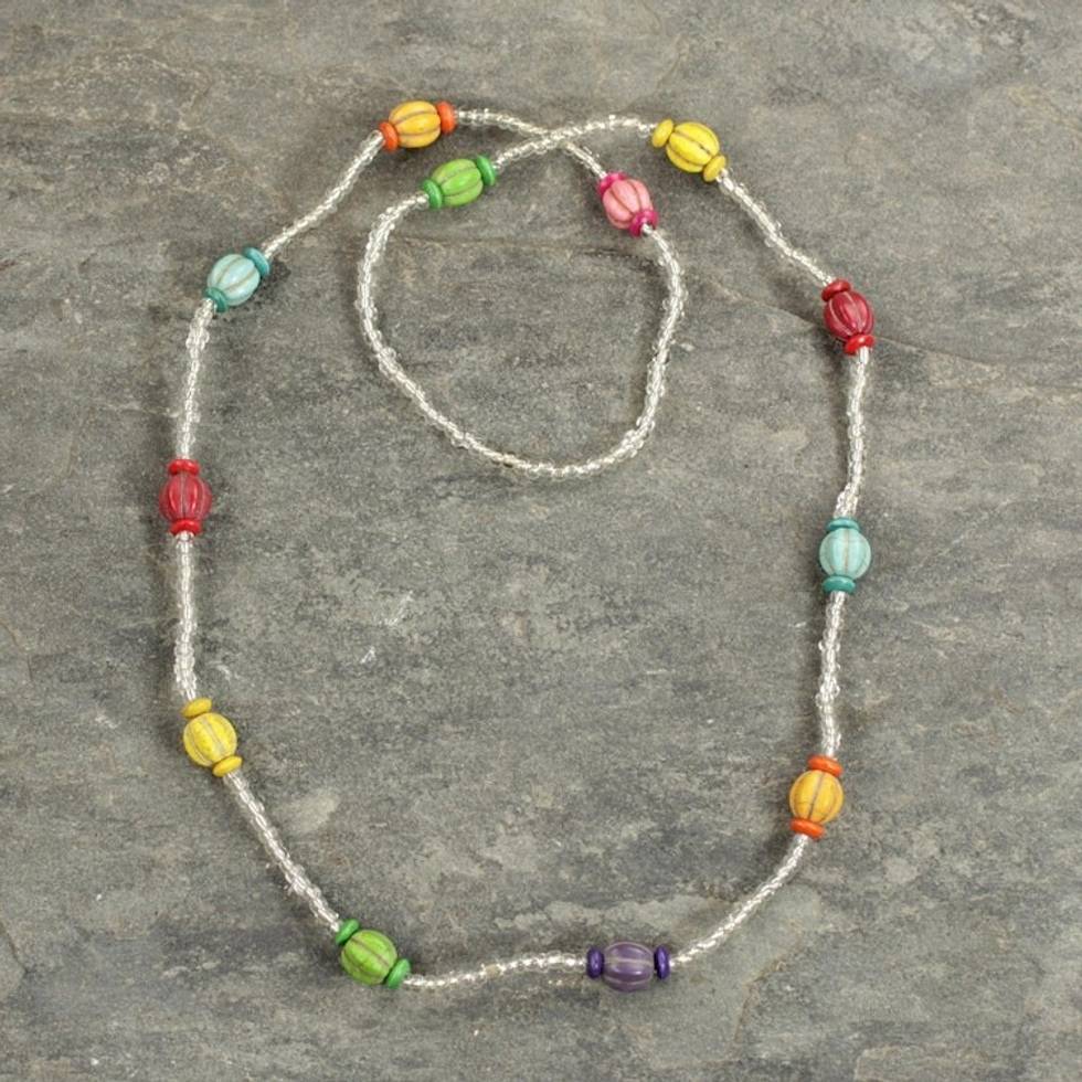 Multicolored Recycled Glass Beaded Necklace from Ghana 'Casual Colors' Item ID: 2671803915