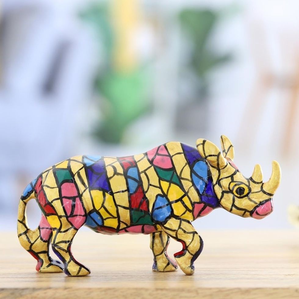 Multicolored Rhino Aluminum Figurine Hand-painted in India 'Charming Rhino' Item ID: 2671787452