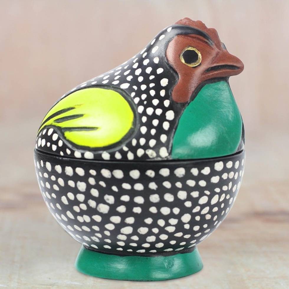 Multicolored Rooster Decorative Jar from Ghana 'Colorful Rooster' Item ID: 2671805732