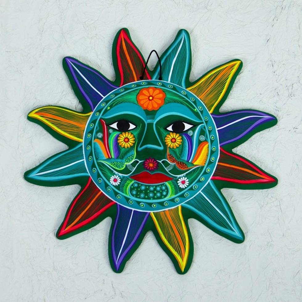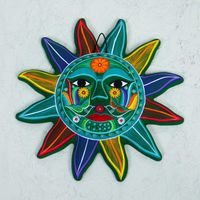 Multicolored Sun Ceramic Wall Art from Mexico 'Teal Sun' Item ID: 2669897971