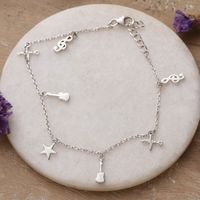 Music-Themed High-Polished Sterling Silver Charm Bracelet 'Musical Beats' Item ID: 2671622415