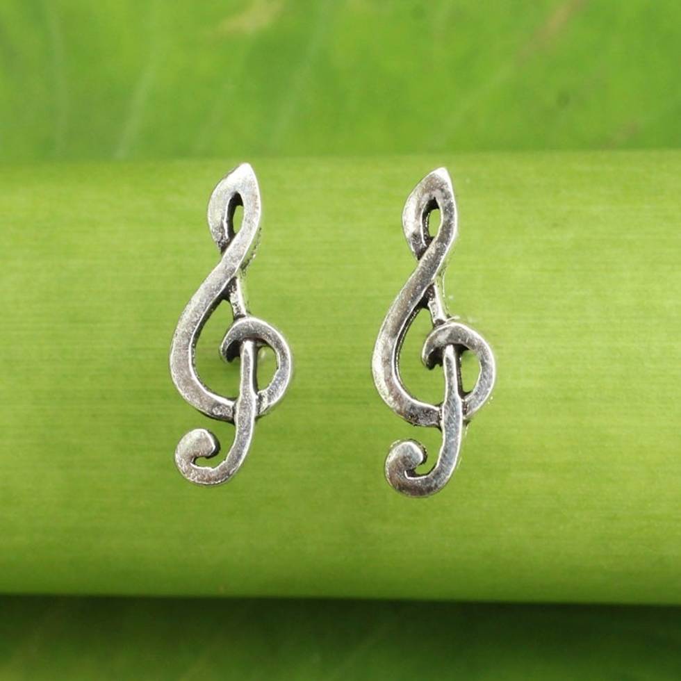 Musical Sol Key Note G Clef Earrings in 925 Sterling Silver 'Sol Key' Item ID: 2669927564