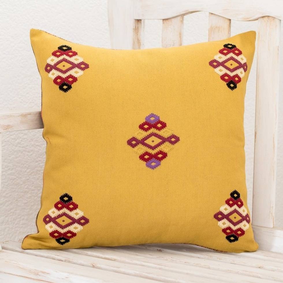 Mustard Colored Loom Woven Cotton Throw Pillow Cover 'Jaspe and Geometry' Item ID: 2671771824