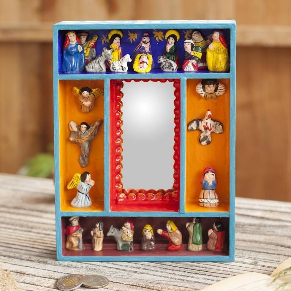 Nativity-Themed Wood and Ceramic Wall Mirror from Peru 'Nativity Reflection' Item ID: 2669994362