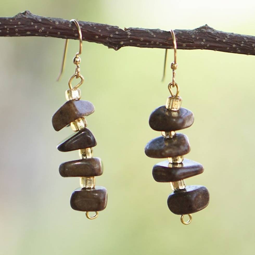 Natural Agate and Recycled Glass Beaded Dangle Earrings 'Proud Queen' Item ID: 2671804081
