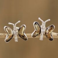 Natural Amber Butterfly Button Earrings from Mexico 'Ancient Butterfly' Item ID: 2669931615